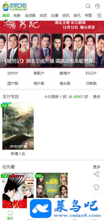 [影音娱乐] 苹果cmsv10绿白简洁风格响应式模板 PC+WAP自适应