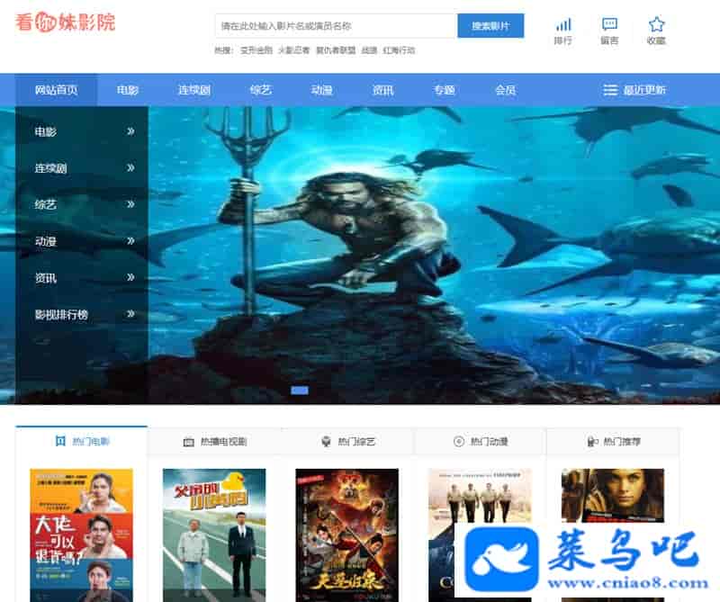 [影音娱乐] 苹果cmsv10蓝色精美大气电脑PC端模板