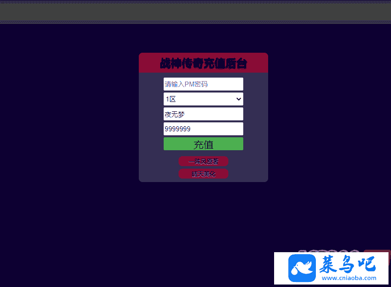 架设教程里没有GM后台地址。。地址是 http://你的IP:99/pay.php 充值后台的PM码是1