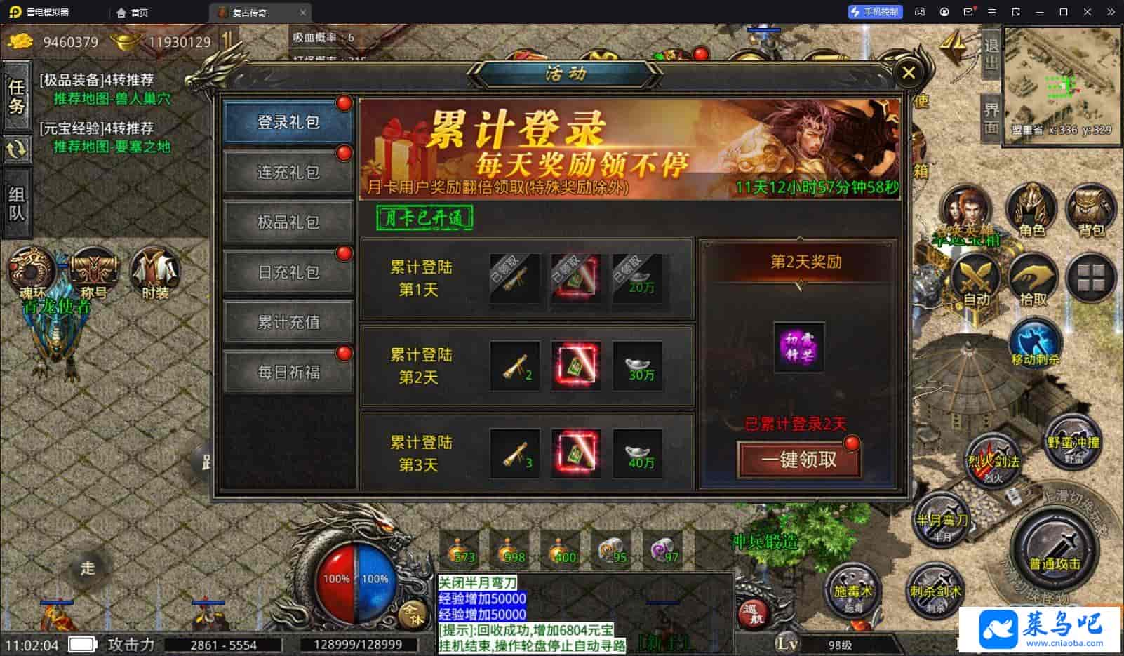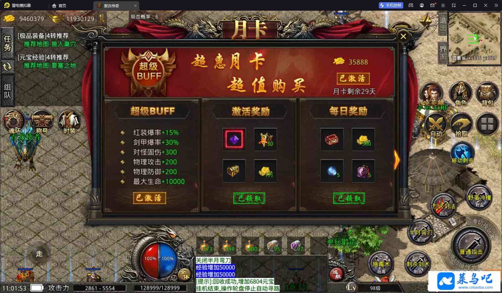 自动回收,全屏拾取,自动挂机,基本样样齐全商城里没有回城石,只有随机石,用M2设置自己账号为10级权限,然后用命令自己刷回城石。这里叫(盟重回城石)
