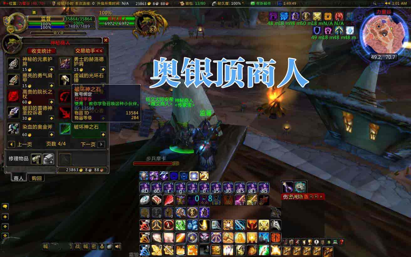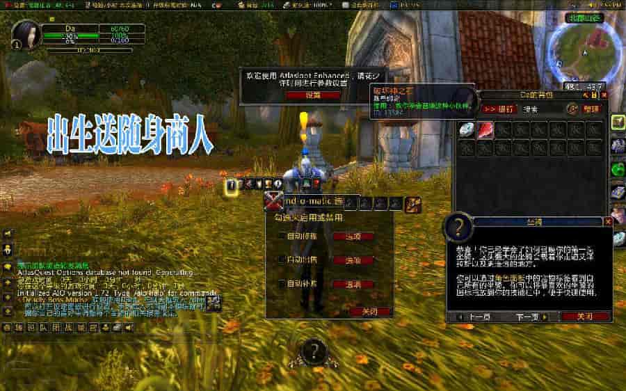 更新铁桥商人、奥银顶商人、TAQ商人、黑庙商人、ICC商人,出生即送随身商人;更新勇者之心、强者之心、探索者战袍、神器战袍等装备