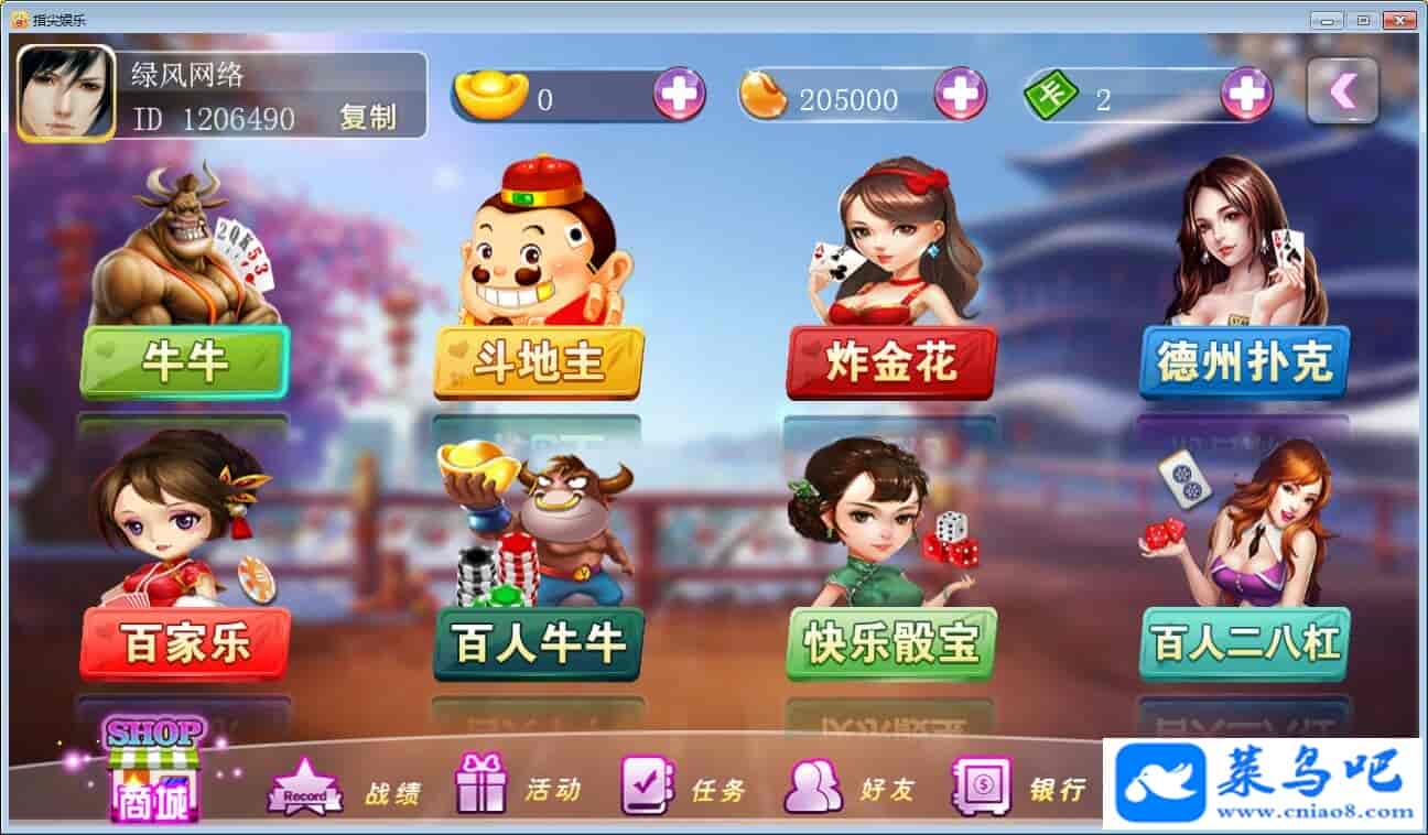 游戏名称:傲玩至尊版内含游戏:广东麻将,四川麻将,红中麻将,抚州麻将,卡五星,中字麻将,转转麻将,跑得快,牛*,斗*主,炸*花,德州扑克,百*乐,二八杠,捕*测试状态:单机、外网 ( 架设外网仅支持独立服务器+IP )支持系统:服务端架设系统win2008 r2 -64位;玩家系统PC、安卓、苹果架设要求:请保证服务端所需端口全部开启且未被占用(系统问题请自行解决)最低配置要求:CPU8核+内存8G+硬盘10G带宽5M架设难度:一般。1.目前运营功能最完善平台,没有之一