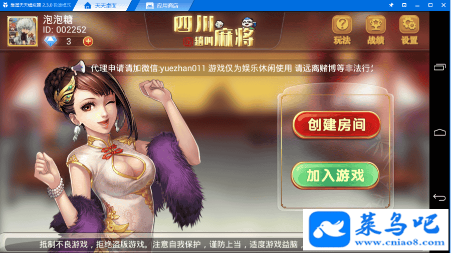 一局牌中,一家胡牌并不结束牌局,而是未胡的玩家继续打,直到3家胡牌或剩余的玩家流局。牌局结束一并结算。这样先胡的玩家并不一定获利最多,点炮的玩家也能翻身,提高了趣味性,促进了牌局的稳定发展————————————〖架设要求〗————————————游戏名称:四川房卡麻将测试状态:单机、外网 ( 架设外网仅支持独立服务器+IP )支持系统:服务端架设系统win2008 r2 -64位;玩家系统、安卓、苹果架设要求:请保证服务端所需端口全部开启且未被占用(系统问题请自行解决)最低配置要求:CPU双核+内存4G+硬盘20G(服务端D盘架设)带宽2M千人运营配置要求:CPU八核+内存8G+硬盘100G(服务端D盘架设)带宽4M架设难度:一般。本游戏是亲测游戏,非网络流传版本,网络流传的版本,有诸多BUG,现本店已修复并完美实测运行