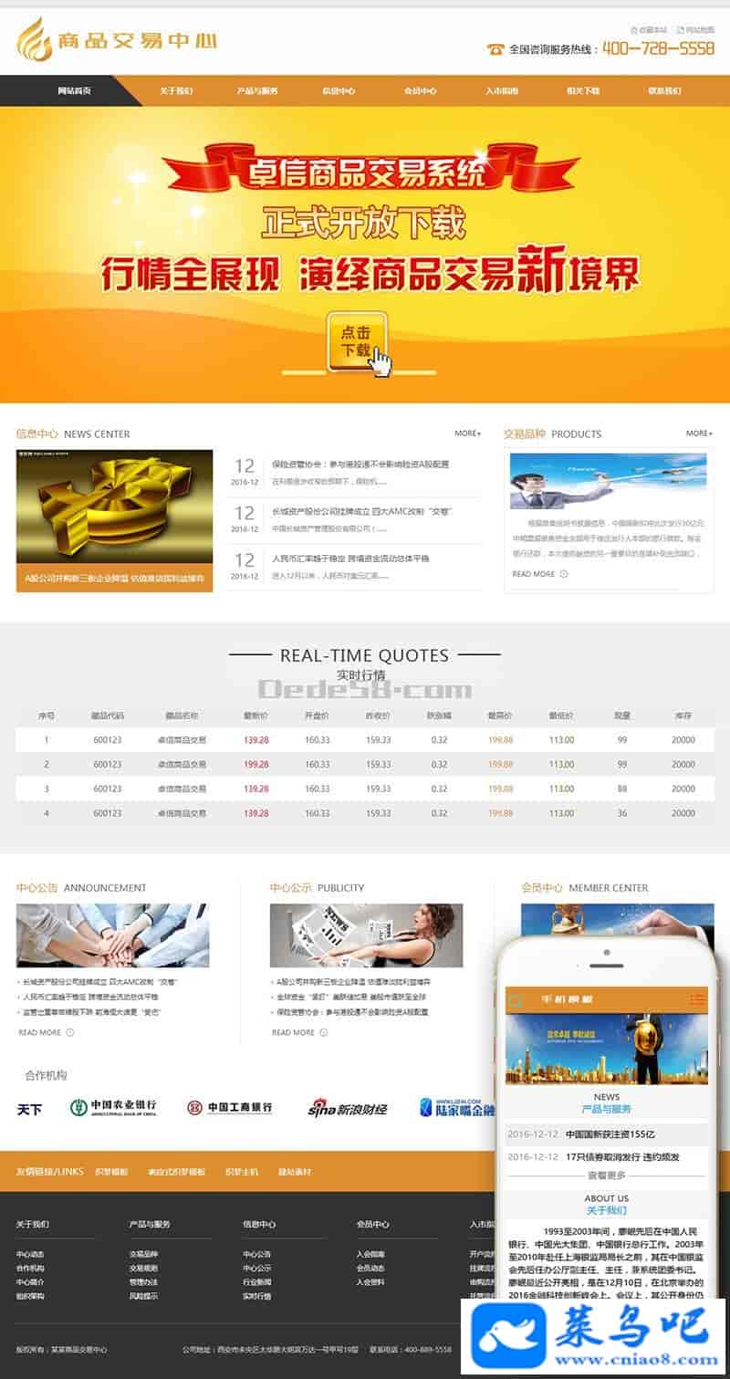 带手机版数据同步)金融股票类网站源码 金融商品交易中心类网站织梦模板