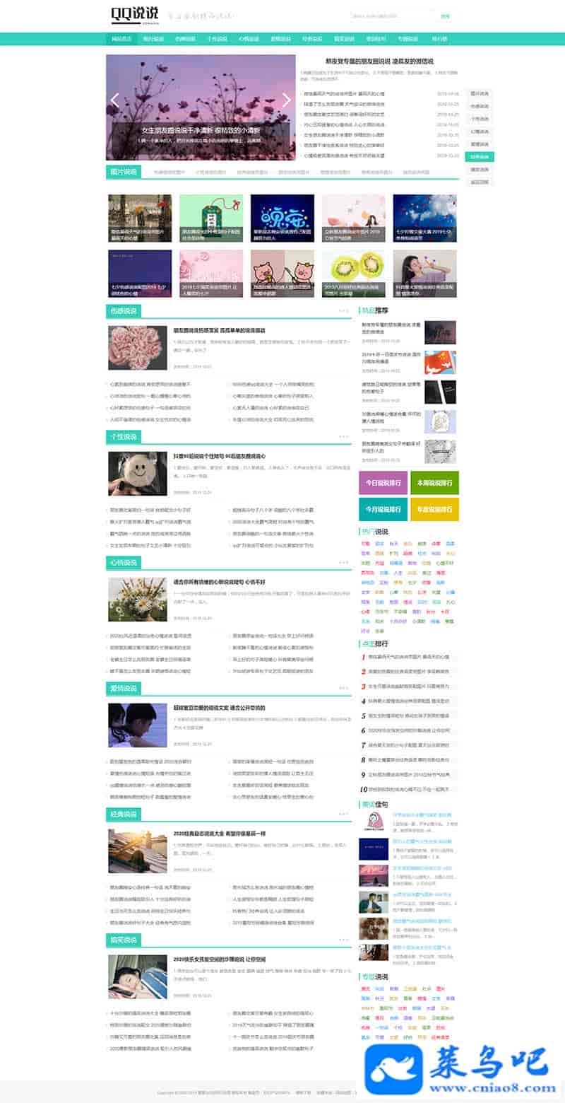 织梦dedecms小清新风格QQ心情日志说说类网站模板(带手机移动端)本套织梦模板采用织梦最新内核开发的模板,文章资讯 QQ空间 日志心情类的的网站都可以用该模板。你只需要把图片和产品内容换成你的即可,颜色都可以修改,改完让你耳目一新的感觉!布局规整,利于用户体验,手工书写DIV+CSS,代码精简。