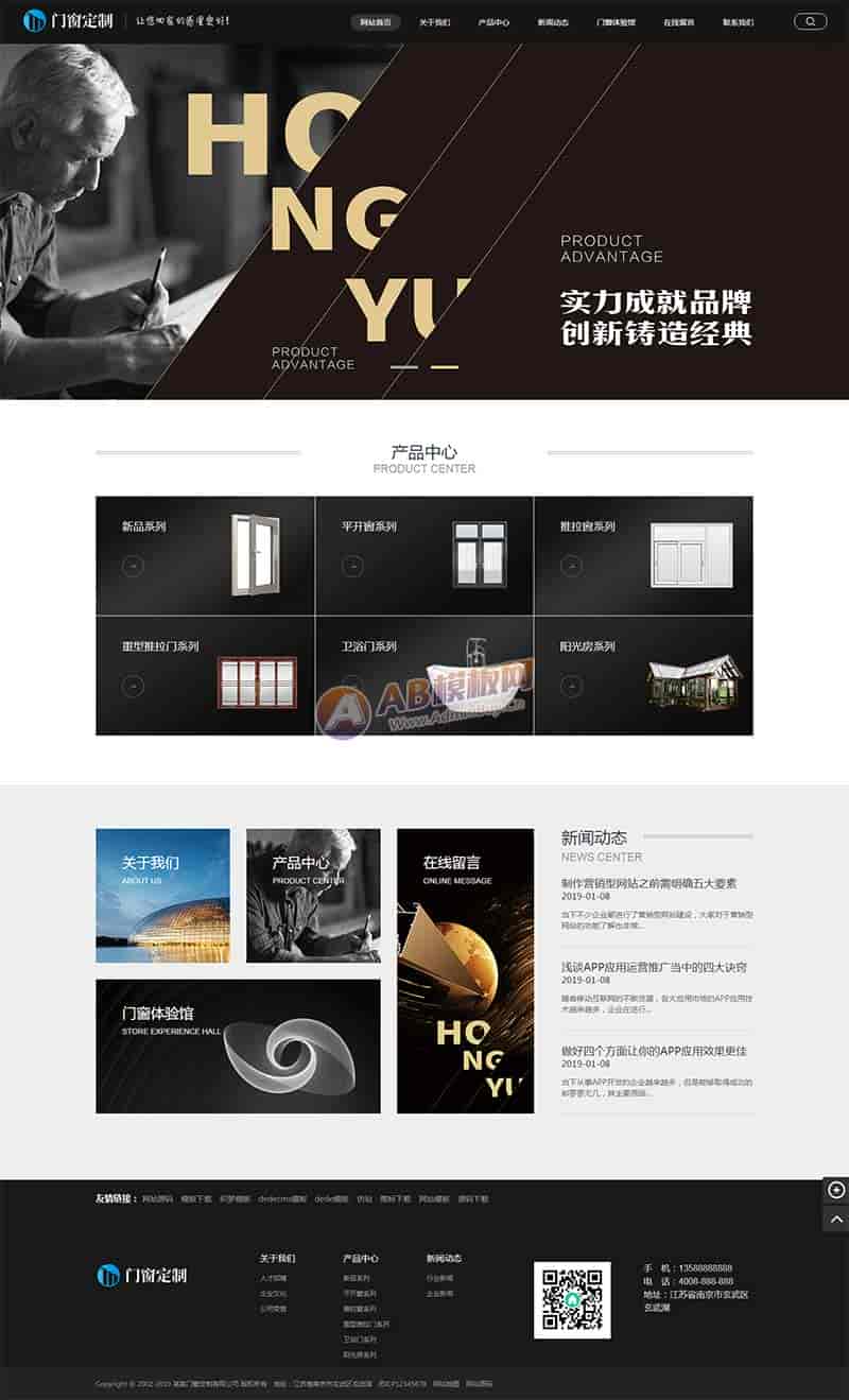 (PC+WAP)黑色门窗定制网站pbootcms模板 五金建材行业网站源码下载PbootCMS内核开发的网站模板,该模板适用于门窗定制网站、五金建材网站等企业,当然其他行业也可以做,只需要把文字图片换成其他行业的即可;PC+WAP,同一个后台,数据即时同步,简单适用!附带测试数据!友好的seo,所有页面均都能完全自定义标题/关键词/描述,PHP程序,安全、稳定、快速;用低成本获取源源不断订单!后台:域名/admin.php