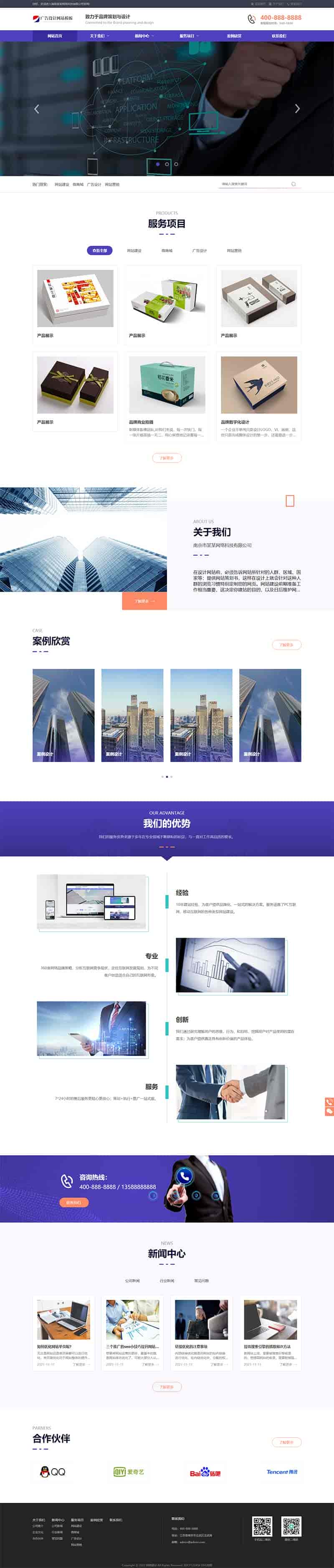 (自适应手机端)网络建站广告公司网站pbootcms模板 品牌策划设计类网站源码下载PbootCMS内核开发的网站模板,该模板适用于网络建站公司、品牌策划设计公司网站等企业,当然其他行业也可以做,只需要把文字图片换成其他行业的即可;自适应,同一个后台,数据即时同步,简单适用!附带测试数据!友好的seo,所有页面均都能完全自定义标题/关键词/描述,PHP程序,安全、稳定、快速;用低成本获取源源不断订单!后台:域名/admin.php