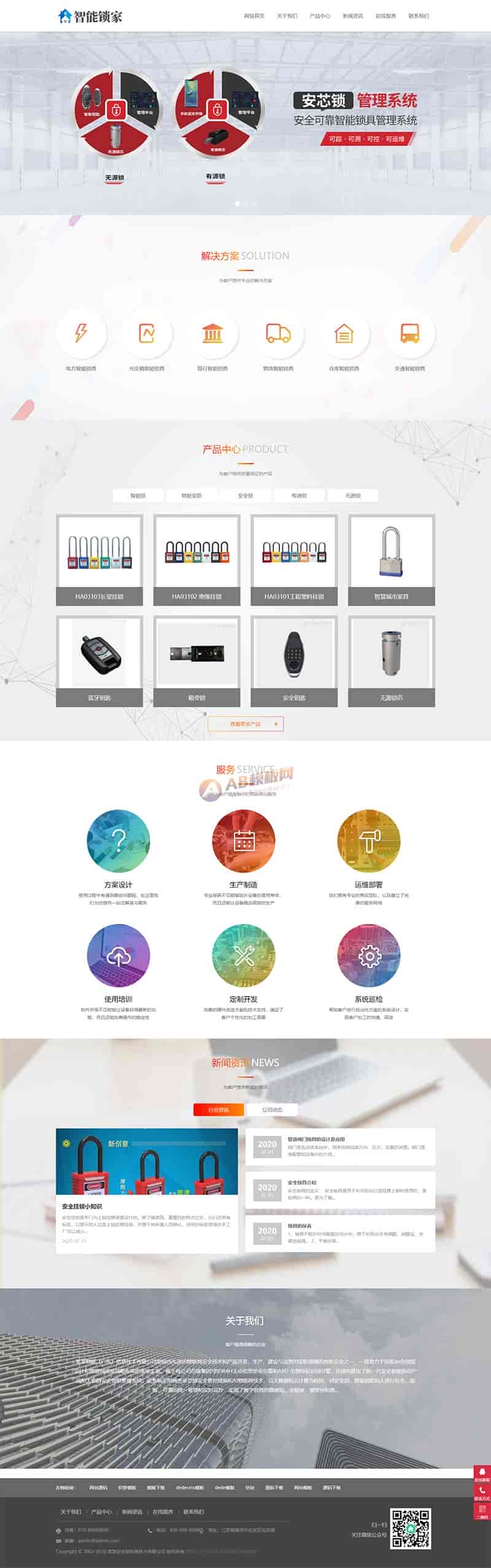 (自适应手机端)安全锁锁芯锁具网站pbootcms模板 智能防盗安全锁网站源码下载PbootCMS内核开发的网站模板,该模板适用于锁芯锁具网站、智能锁网站等企业,当然其他行业也可以做,只需要把文字图片换成其他行业的即可;响应式,同一个后台,数据即时同步,简单适用!附带测试数据!友好的seo,所有页面均都能完全自定义标题/关键词/描述,PHP程序,安全、稳定、快速;用低成本获取源源不断订单!后台:域名/admin.php