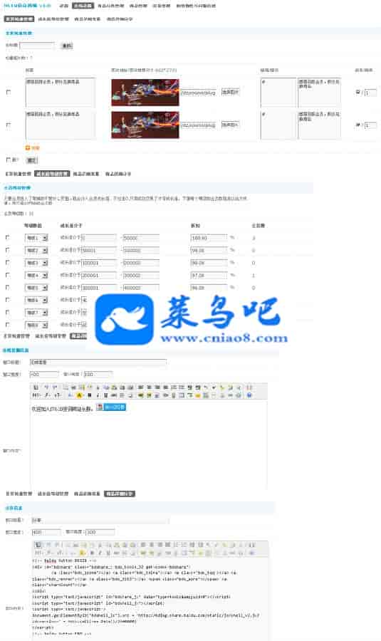 1、会员认证商家后就可以发布商品,与后台一样的商品相关的管理功能,同步论坛的会员与积分