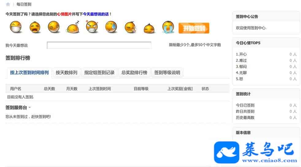 比如每日签到数据备份(源码自[DSU]VIP中心)、是否开启伪造签到数据、自定义表情、签到人数统计、签到数据备份等功能!