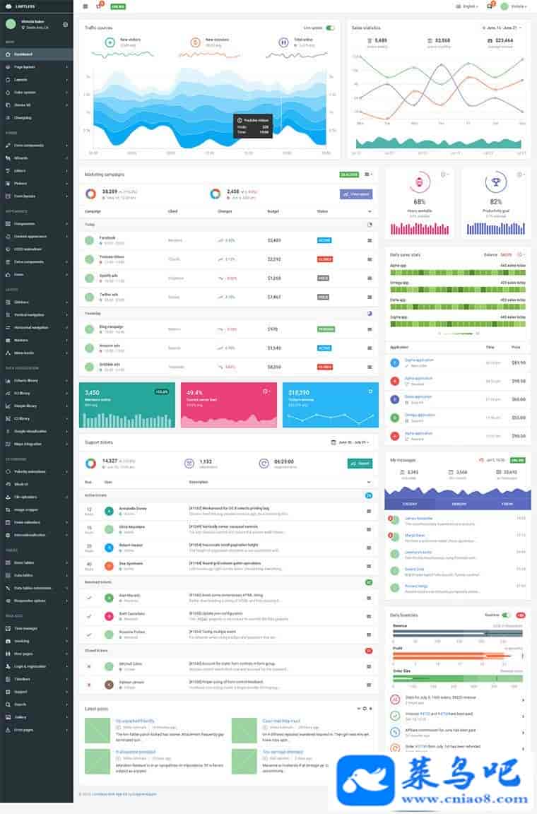 bootstrap响应式网站广告流量统计后台管理系统模板,广告数据统计后台ui模板。页面非常多,有两百多个。