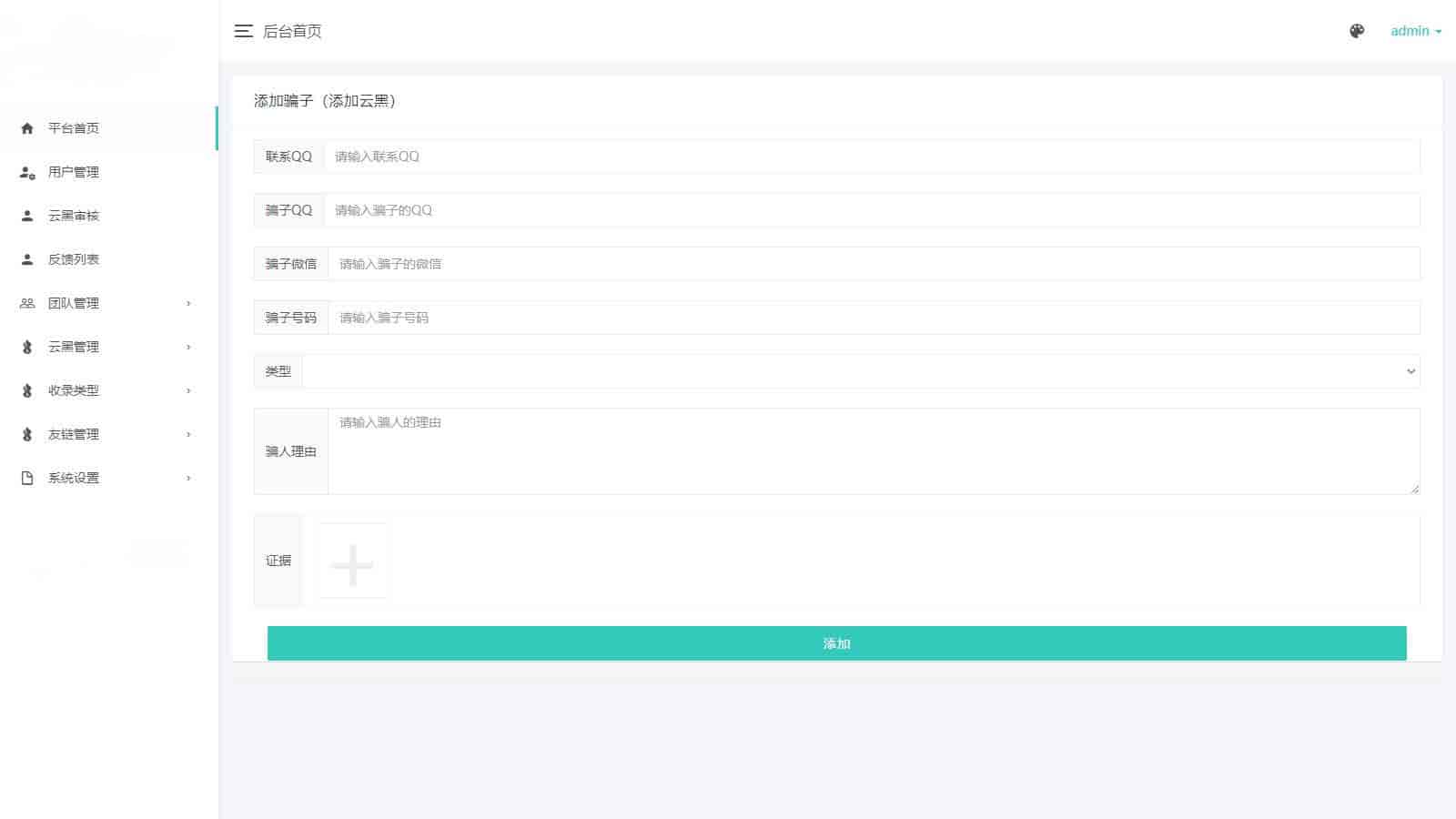 支持添加各种云黑类型记录