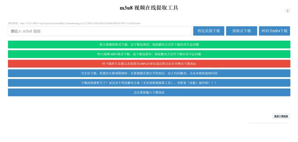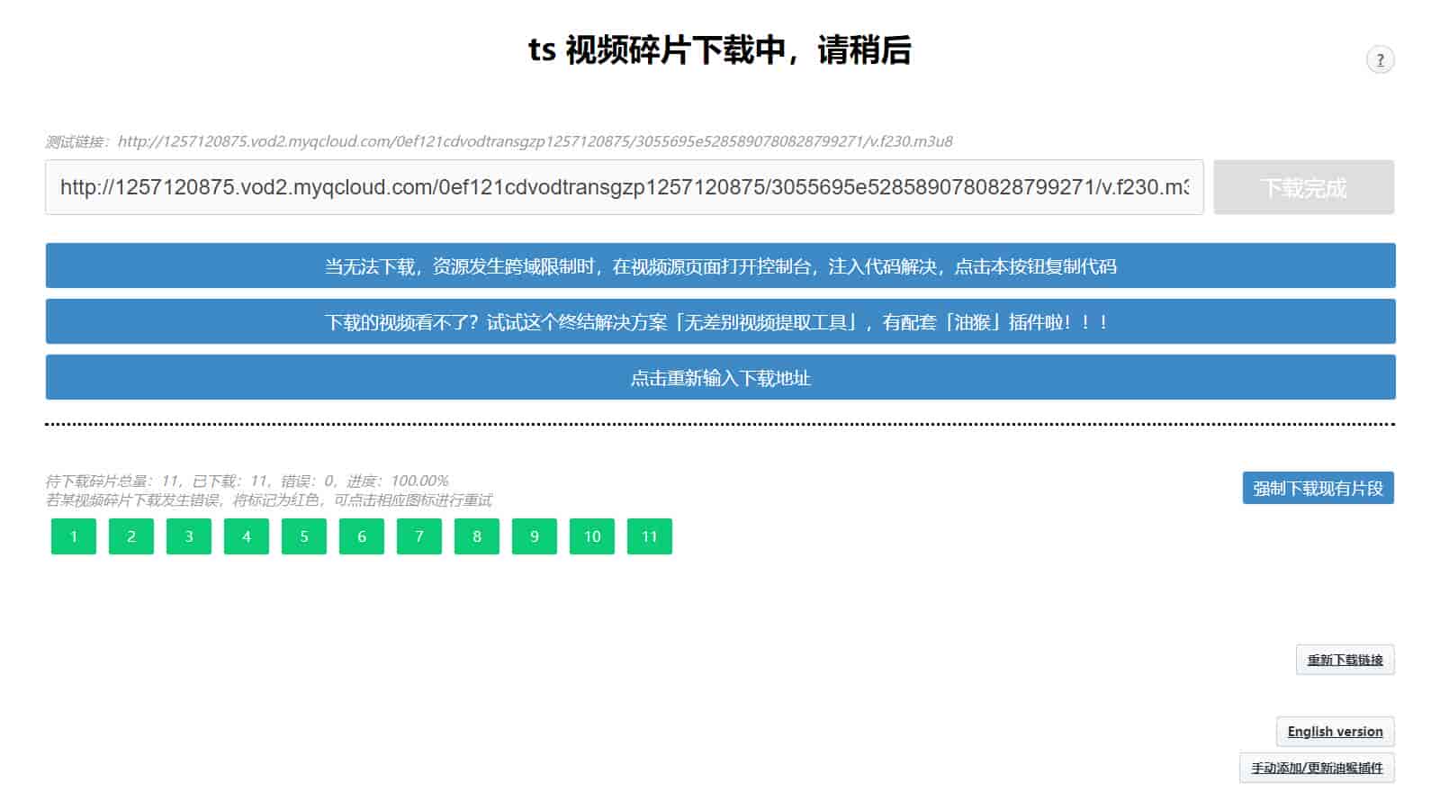 3.重新下载错误片段:当部分视频片段下载失败时,点击该按钮,重新下载错误片段。