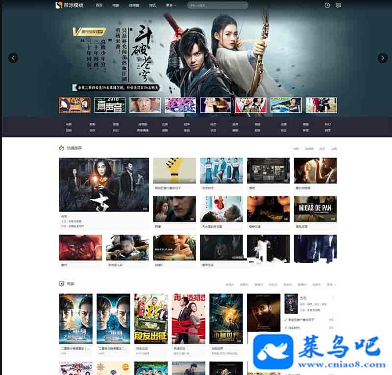 苹果CMSv10影视源码 手机电脑自适应模板 苹果CMS影视系统响应式模板带宽屏轮播图 这个模板不需要授权的,自适应手机电脑,上传模板到根目录直接解压,再到后台设置启用即可