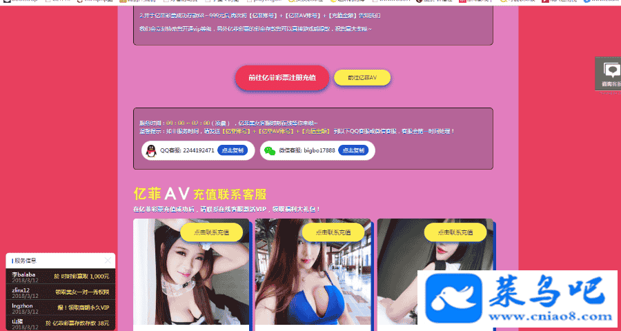 菜鸟吧申明,源码仅提供研究学习使用,凡搭建违法网站等行为后果一律自行承担,与菜鸟吧源码无任何关系。