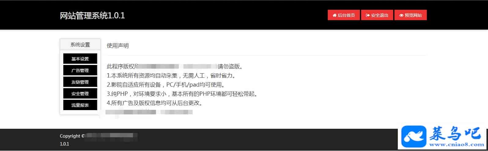 纯PHP,对环境要求小,基本所有的PHP环境都可轻松带起。