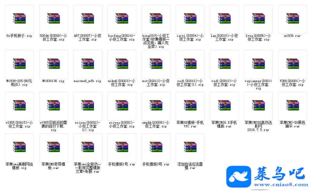 [影音娱乐] 菜鸟吧源码分享:33套苹果CMS影视系统响应式模板打包下载