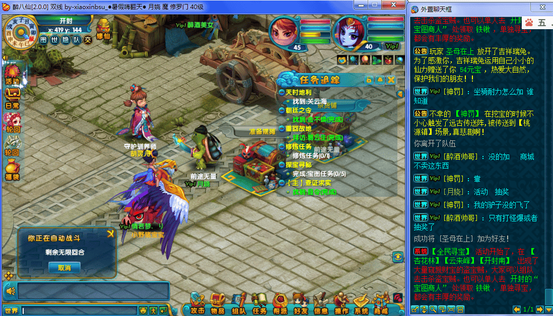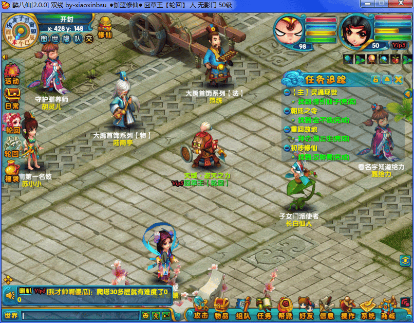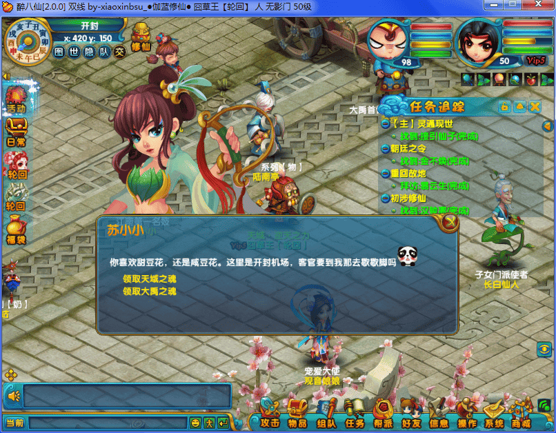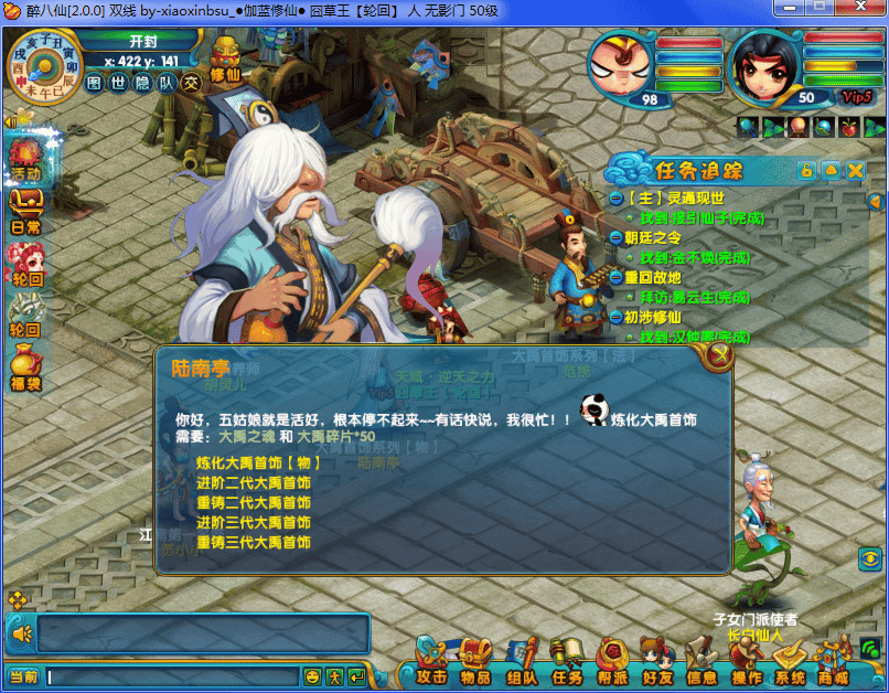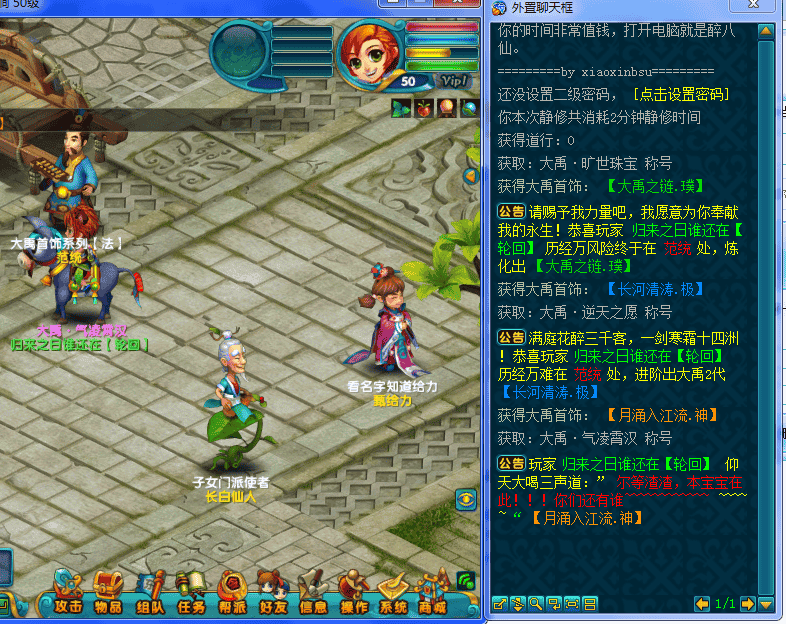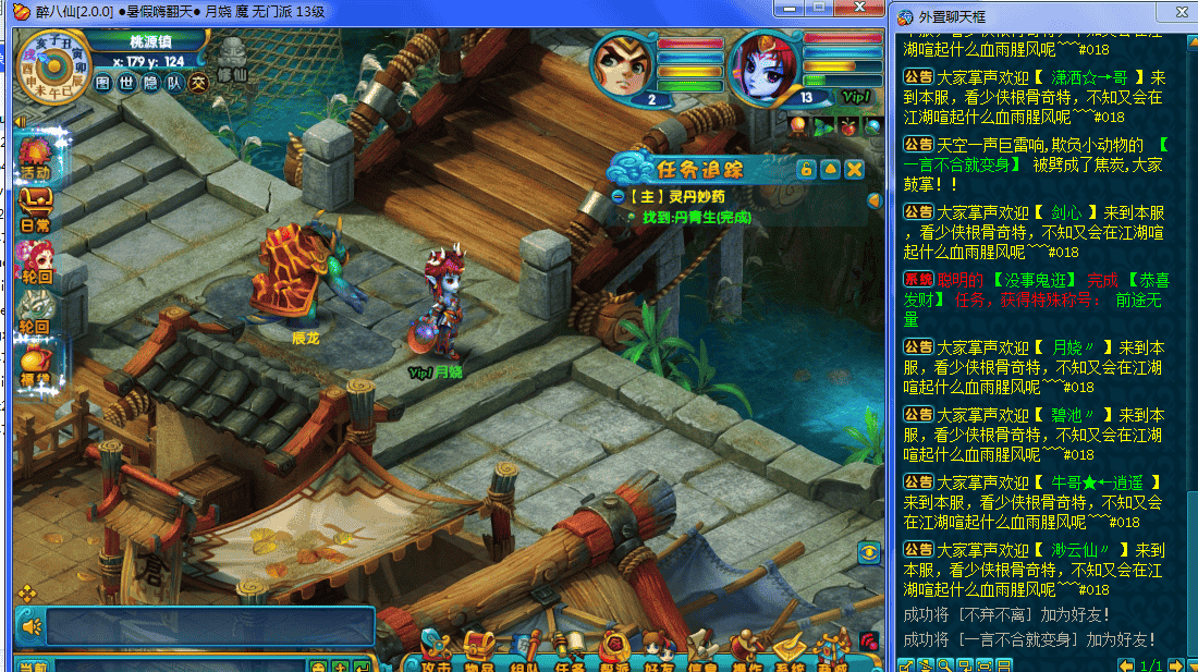 【桃源镇】 【半仙】NPC 这里进行 增加109级以上的修仙任务。