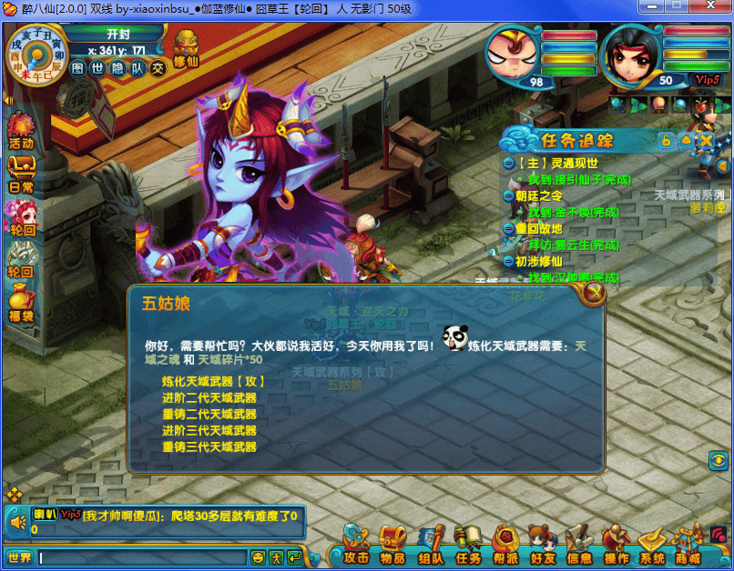 50积分:有几率得到500元宝券,服?打造配方,高级宠物技能书