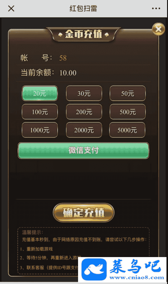 3 也就是说10元的包。系统有可能赚10+ 中一个雷就10元。两个就20 4玩家可以上庄 系统模仿人抢咯 而且机器人是先把不中的抢了 玩家发包也有几率出没有雷的包。机器人可以把它发的包都抢了