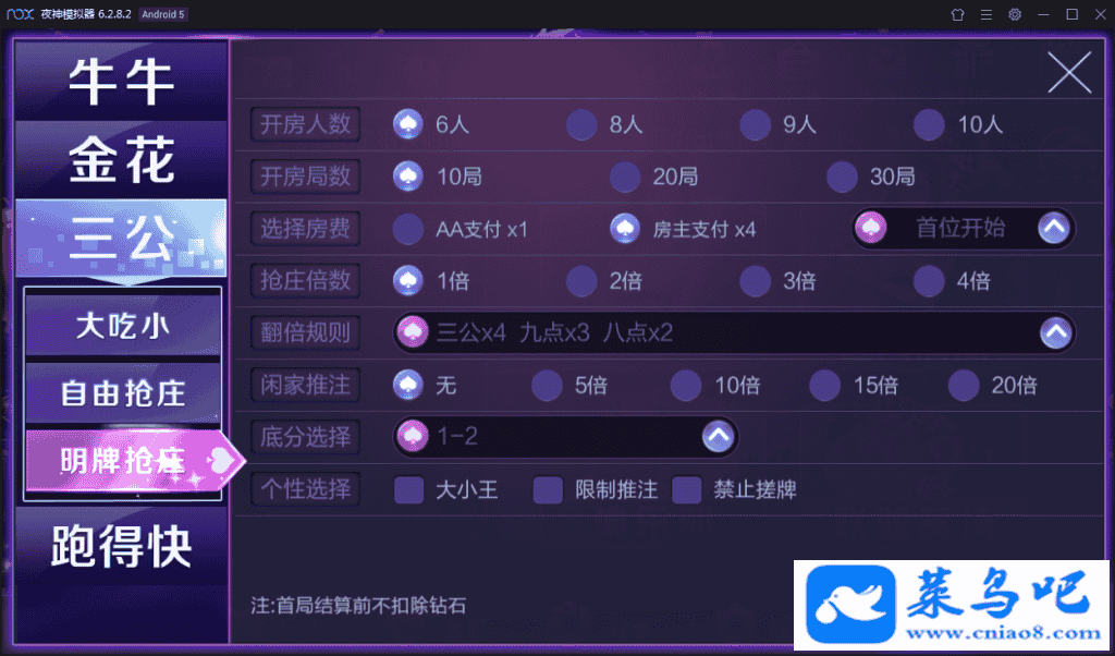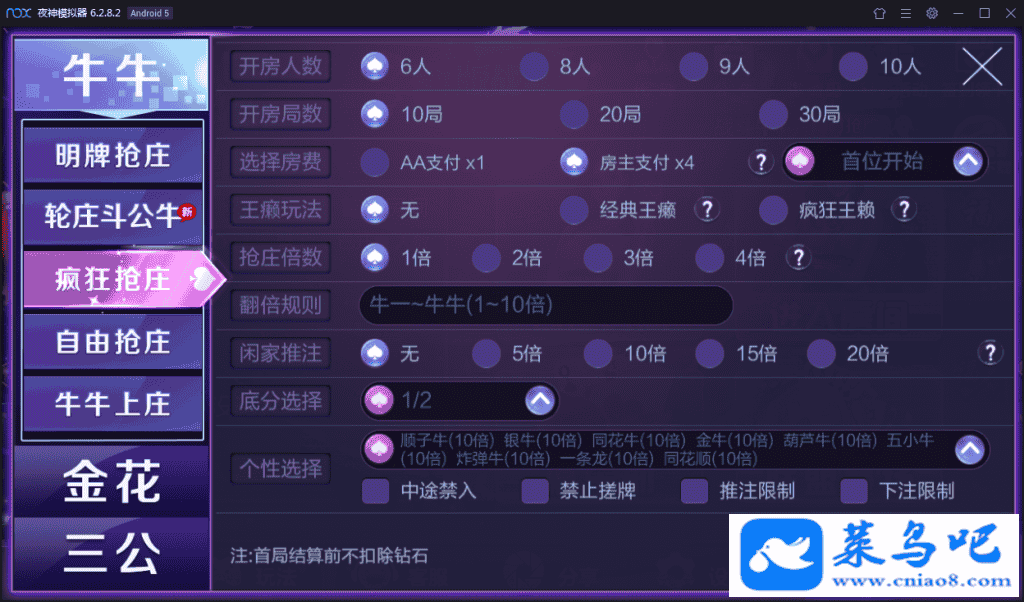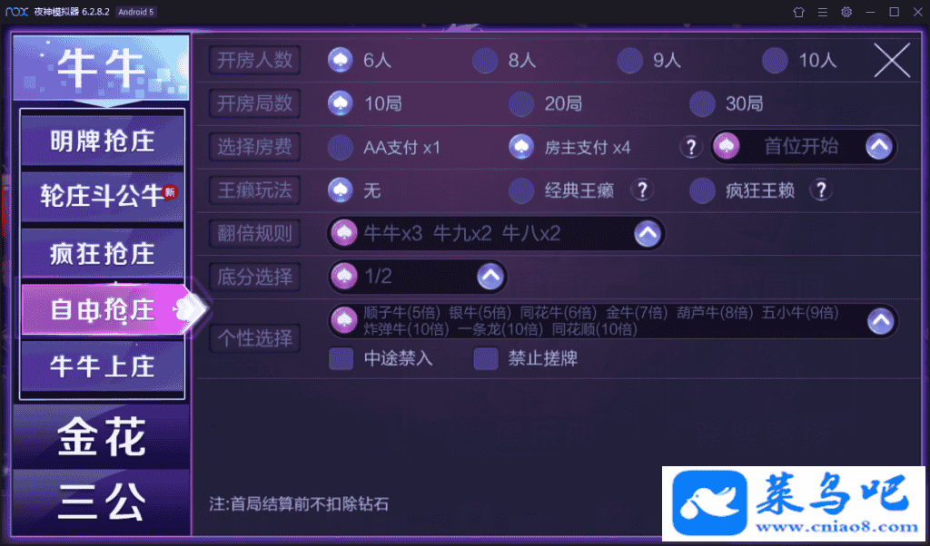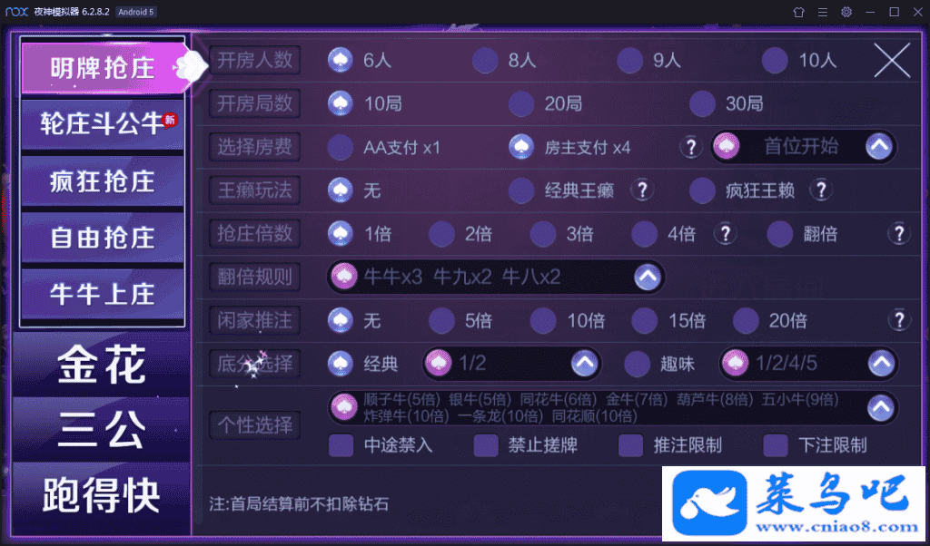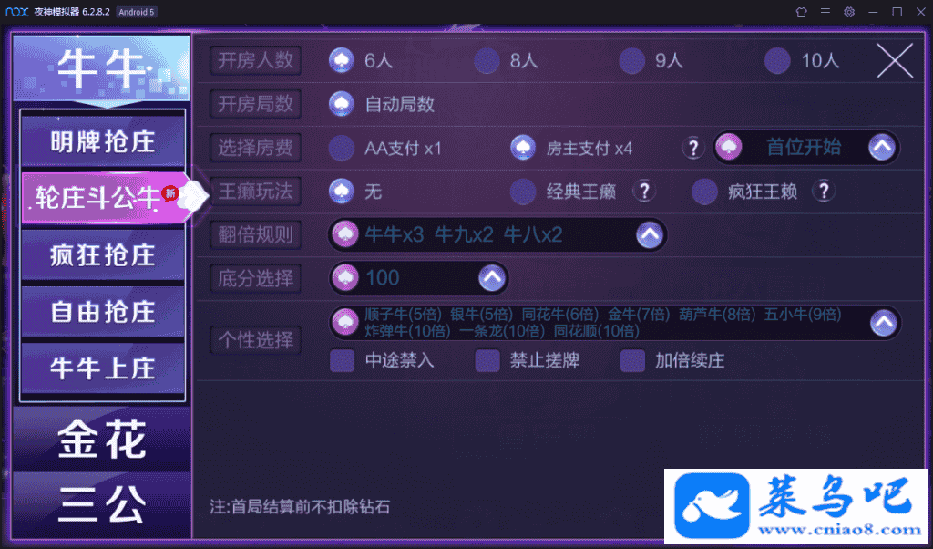 轮庄斗公牛、明牌抢庄、疯狂抢庄、自由抢庄、牛牛上庄