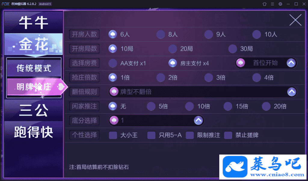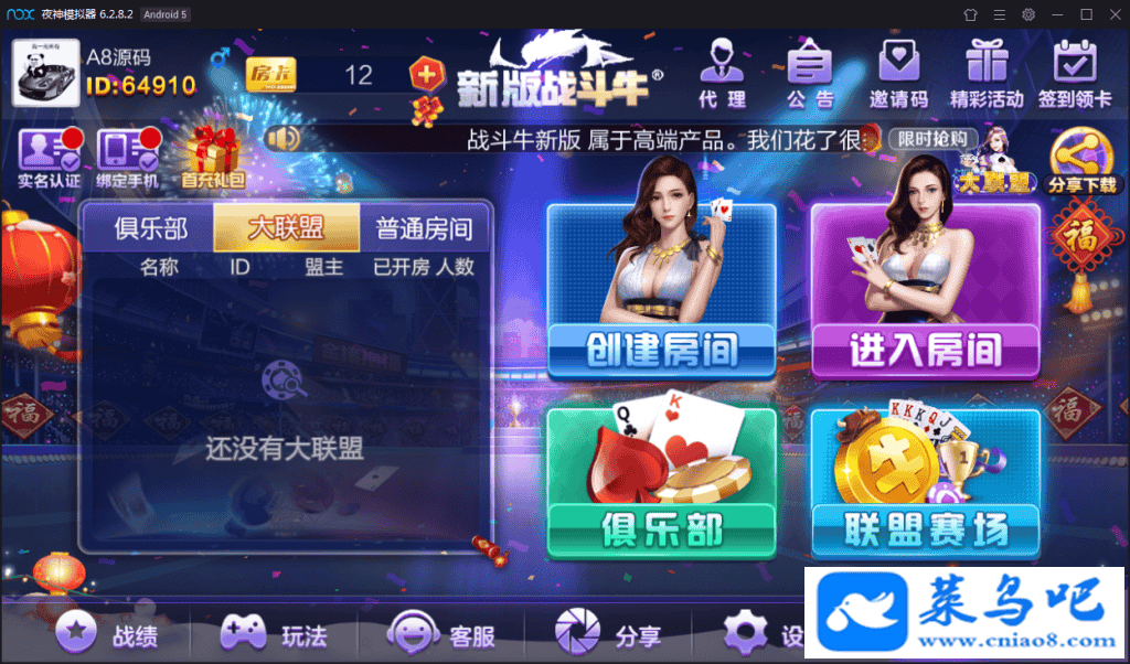 战斗牛模式:俱乐部模式+茶楼模式+联盟赛场