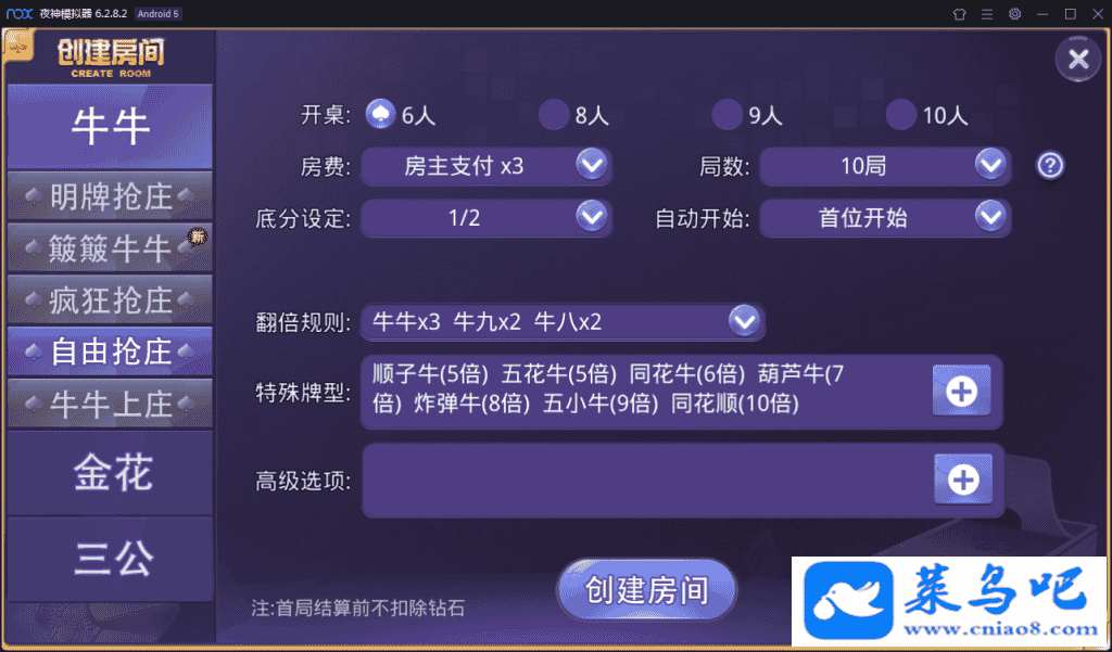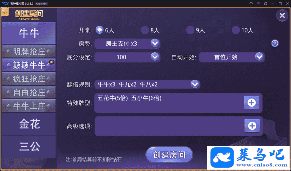 明牌抢庄、簸簸牛牛、疯狂抢庄、自由抢庄、牛牛上庄