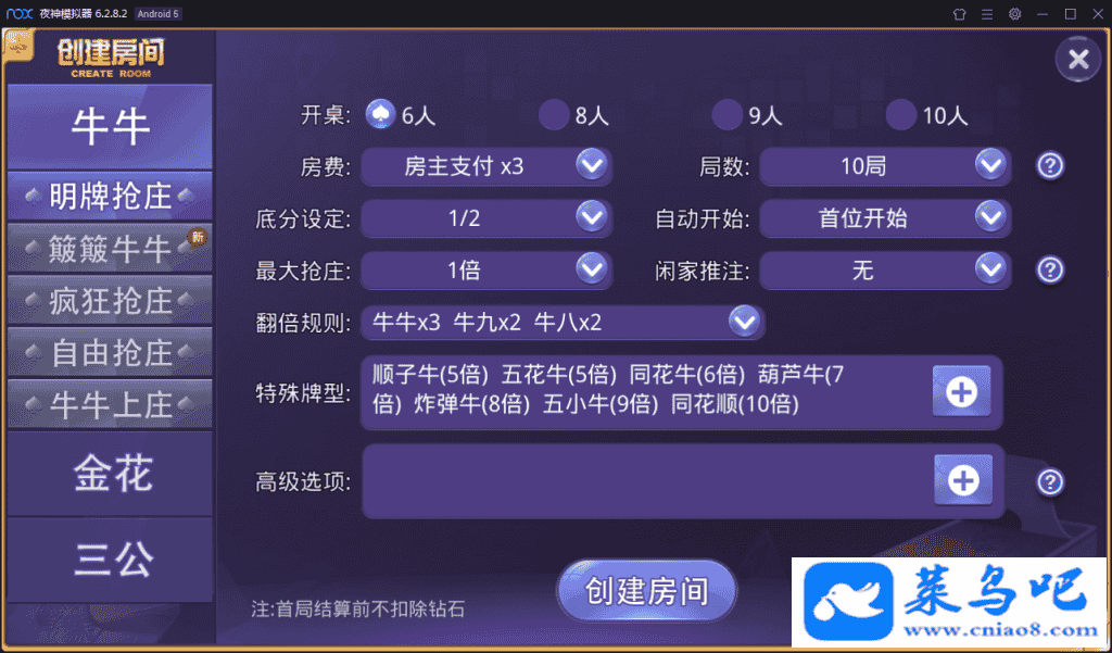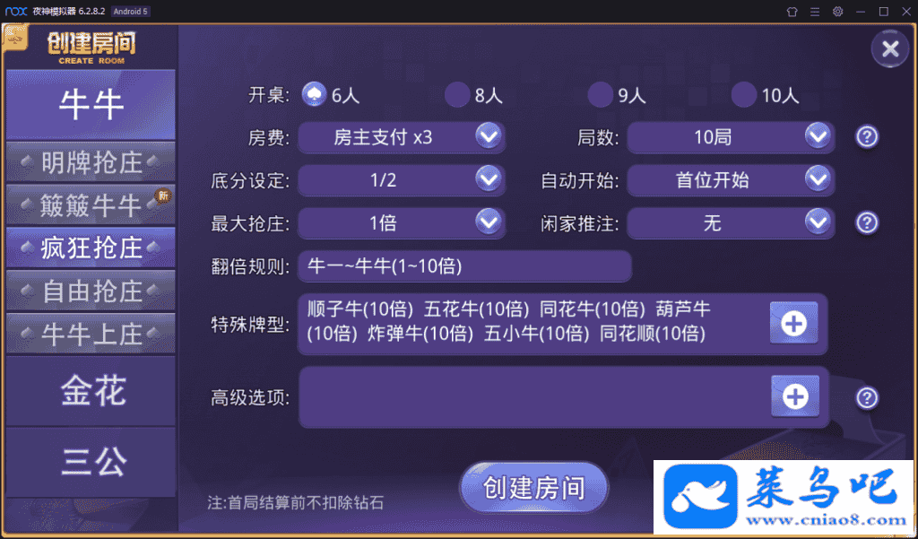 明牌抢庄、簸簸牛牛、疯狂抢庄、自由抢庄、牛牛上庄