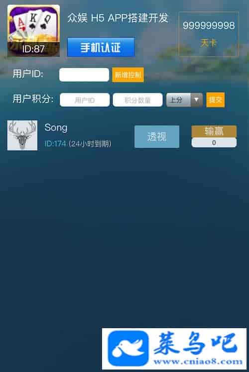 源码支持积分上下分模式,能给玩家自由上下分,后台可以控制任何玩家透视和胜率。源码不用授权,全开源,可以在任何服务器二次开发和搭建运行。源码无后门,运行稳定,里面有搭建教程。