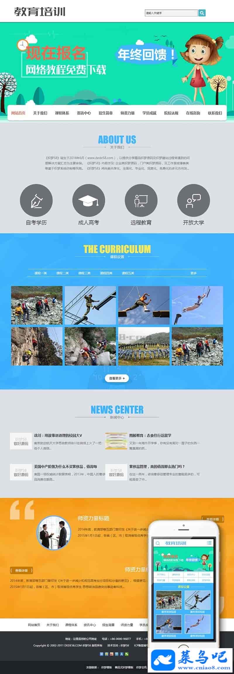 模板名称:教育招生培训服务类织梦模板(带手机端)+PC+移动端+利于SEO优化