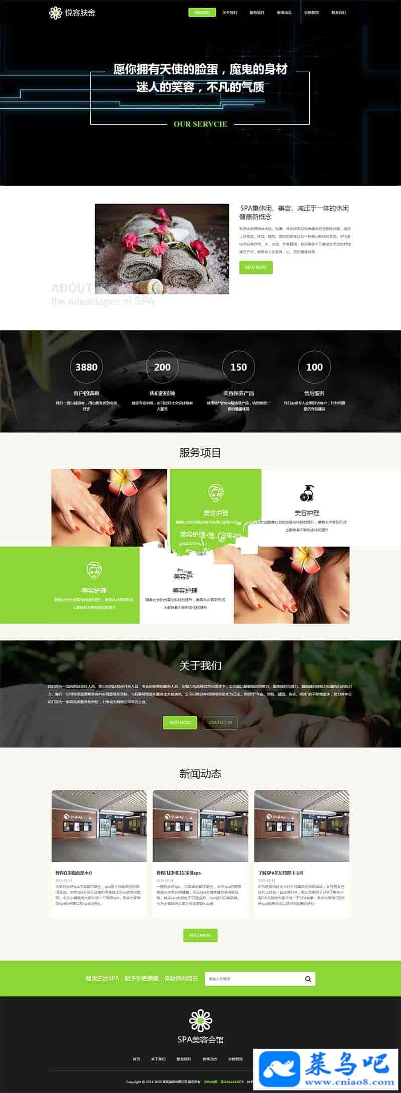 3、适用于美容美体织梦模板、养生会所网站源码;