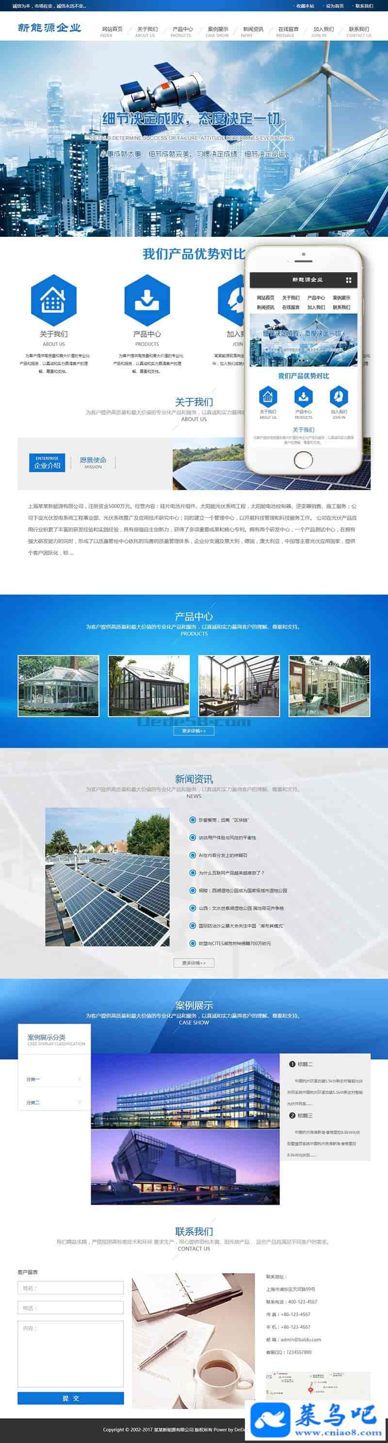 织梦dedecms新能源太阳能光伏系统企业网站模板(带手机移动端)本套织梦模板采用织梦最新内核开发的模板,这款模板使用范围极广,不仅仅局限于一类型的企业,新能源太阳能光伏类的网站都可以用该模板。你只需要把图片和产品内容换成你的即可,颜色都可以修改,改完让你耳目一新的感觉!布局规整,利于用户体验,手工书写DIV+CSS,代码精简。