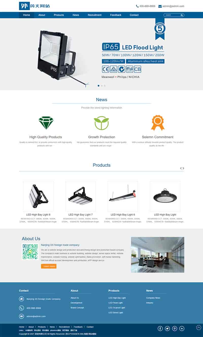 (自适应手机版)响应式外贸灯具网站pbootcms模板 LED灯具英文外贸网站源码下载PbootCMS内核开发的网站模板,该模板适用于外贸灯具、LED等企业,当然其他行业也可以做,只需要把文字图片换成其他行业的即可;响应式,同一个后台,数据即时同步,简单适用!附带测试数据!友好的seo,所有页面均都能完全自定义标题/关键词/描述,PHP程序,安全、稳定、快速;用低成本获取源源不断订单!后台:域名/admin.php