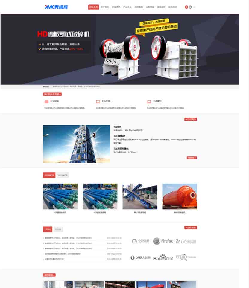 模板介绍(自适应手机端)响应式PbootCMS红色机械设备企业网站PC端模板响应式端同一个后台,数据即时同步,简单适用!附带测试数据!完美的seo,所有页面均都能完全自定义标题/关键词描述,PHP程序,安全、稳定、快速;用最快速度、最低成本获取源源不断订单!