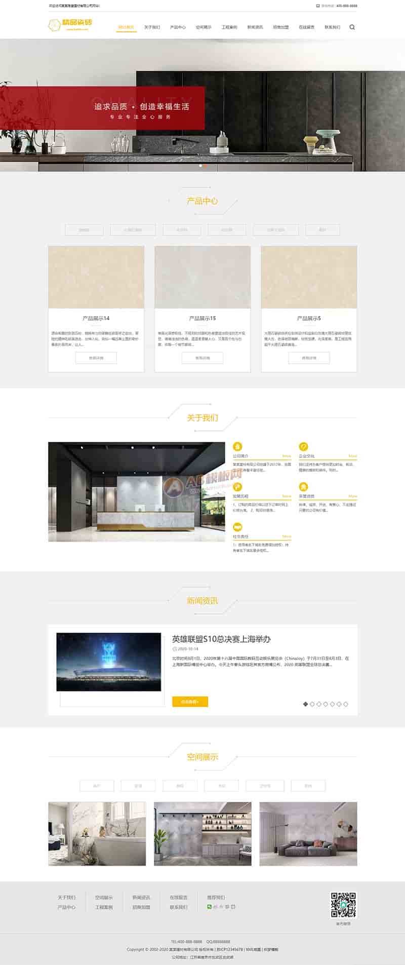 (自适应手机端)响应式瓷砖大理石建材类网站pbootcms模板 html5装修建材网站模板下载PbootCMS内核开发的网站模板,该模板适用于大理石瓷砖、装修建材等企业,当然其他行业也可以做,只需要把文字图片换成其他行业的即可;响应式,同一个后台,数据即时同步,简单适用!附带测试数据!友好的seo,所有页面均都能完全自定义标题/关键词/描述,PHP程序,安全、稳定、快速;用低成本获取源源不断订单!后台:域名/admin.php