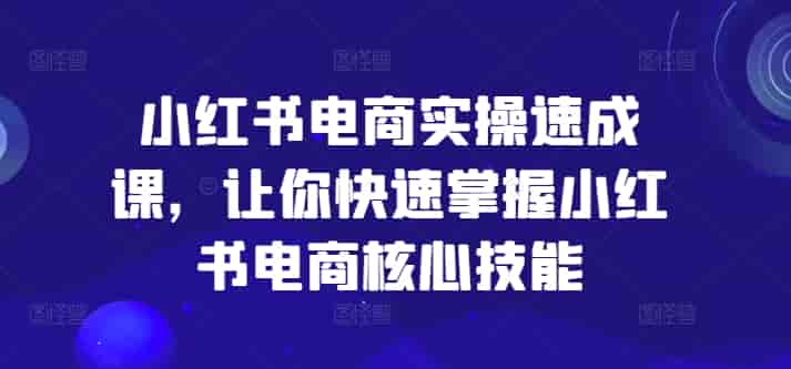 小红书电商实操速成课,让你快速掌握小红书电商核心技能