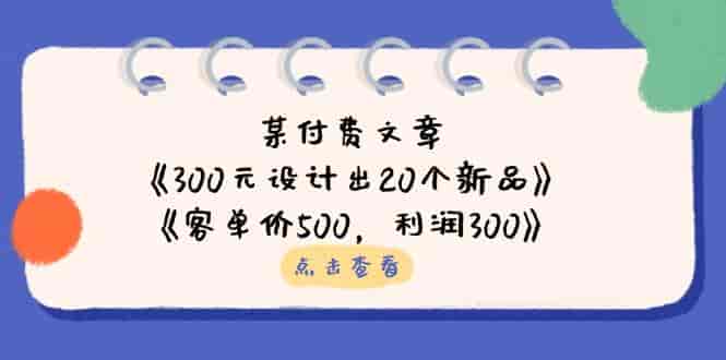 某付费文章:《300元设计出20个新品》+《客单价500,利润300》