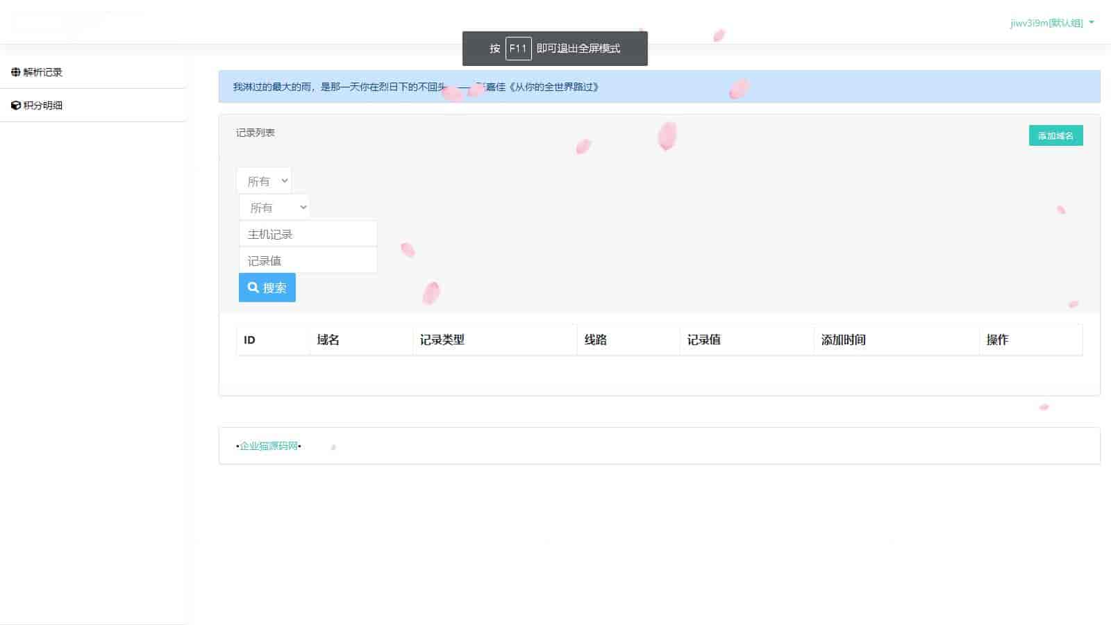 源码描述快乐二级域名分发系统kldns,基于ThinkPHP5.0框架开发,支持的域名解析平台有dnspod、cloudxns、aliyun、dnscom、dnsla等,多用户、多域名、多平台同时存在,界面简洁操作简单。附带赠送两套相同源码,1、快乐二级域名分发源码,大小10.35M。2、快乐二级域名分发系统美化版,大小12.47M。