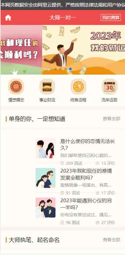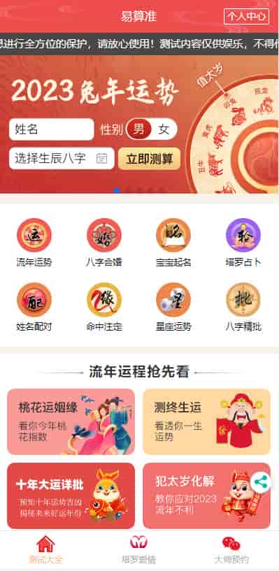 [PHP源码] H5运势测算源码风水起名易经周易八字算命财运姻缘测算塔罗牌占卜宝宝起名源码