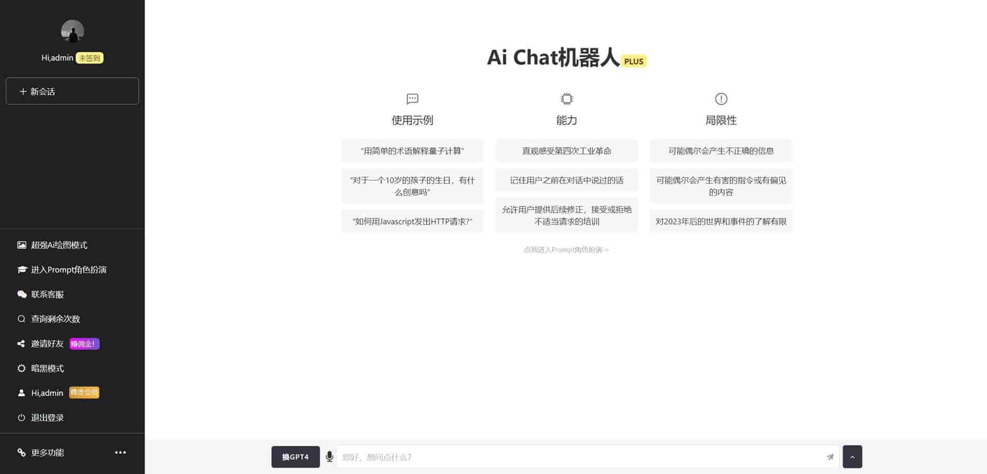 本套ChatGPT源码完美运行,支持6种会员开通模式,支持”购买提问”和”开通月付会员”等套餐,每个IP均可免费提问一次(可以设置),然后自动强制跳转登录,登录之后购买付费套餐。主要功能: