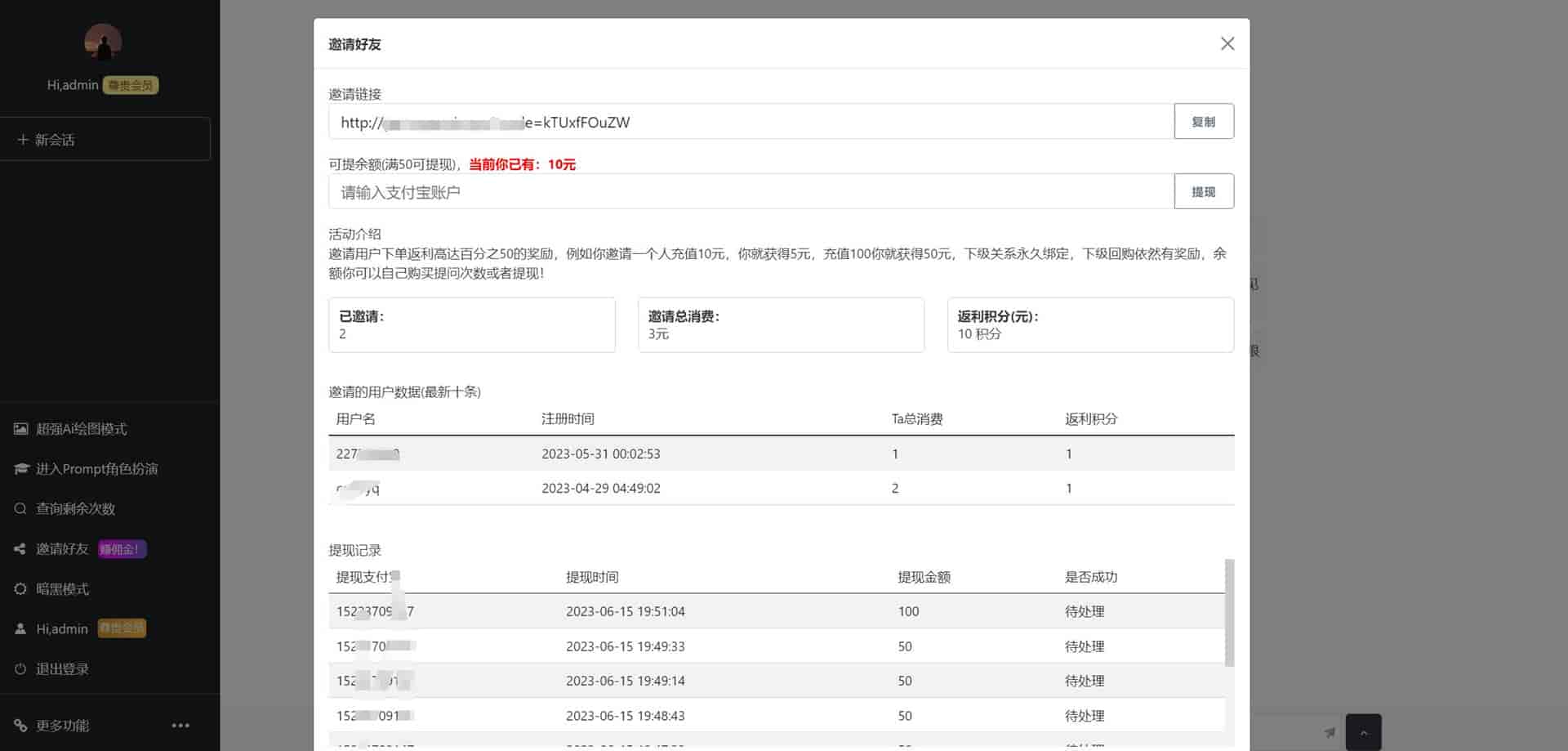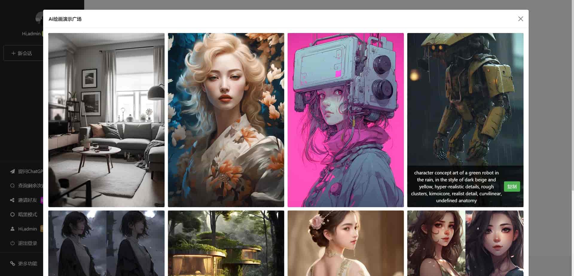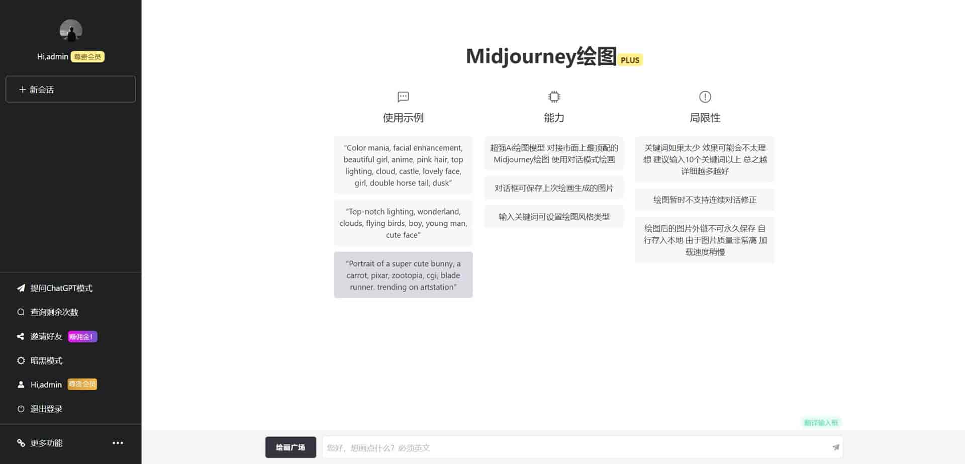 2、AI绘画:对接的意间AI绘画接口,对接MJ ChatGPT官网绘画;