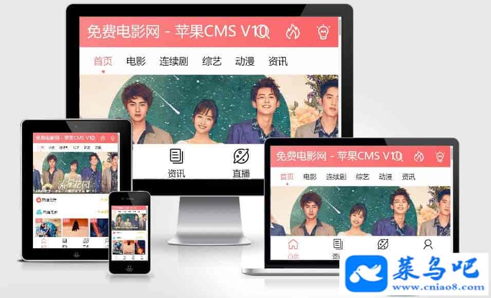 [影音娱乐] 苹果CMSV10手机模板 粉红色风格影视视频网站模板