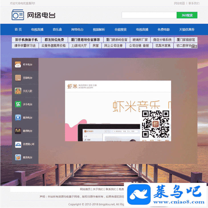 [影音娱乐] 某电视直播网源码,集成电视直播,电台,音乐,云解析等功能,纯HTML文件