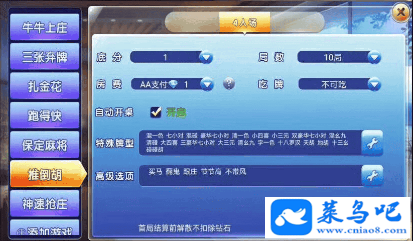 内含游戏:战*牛、扎*花、跑得快、保定麻将、推倒胡