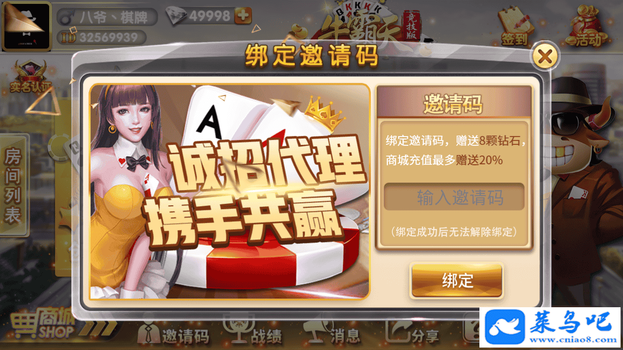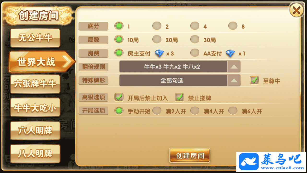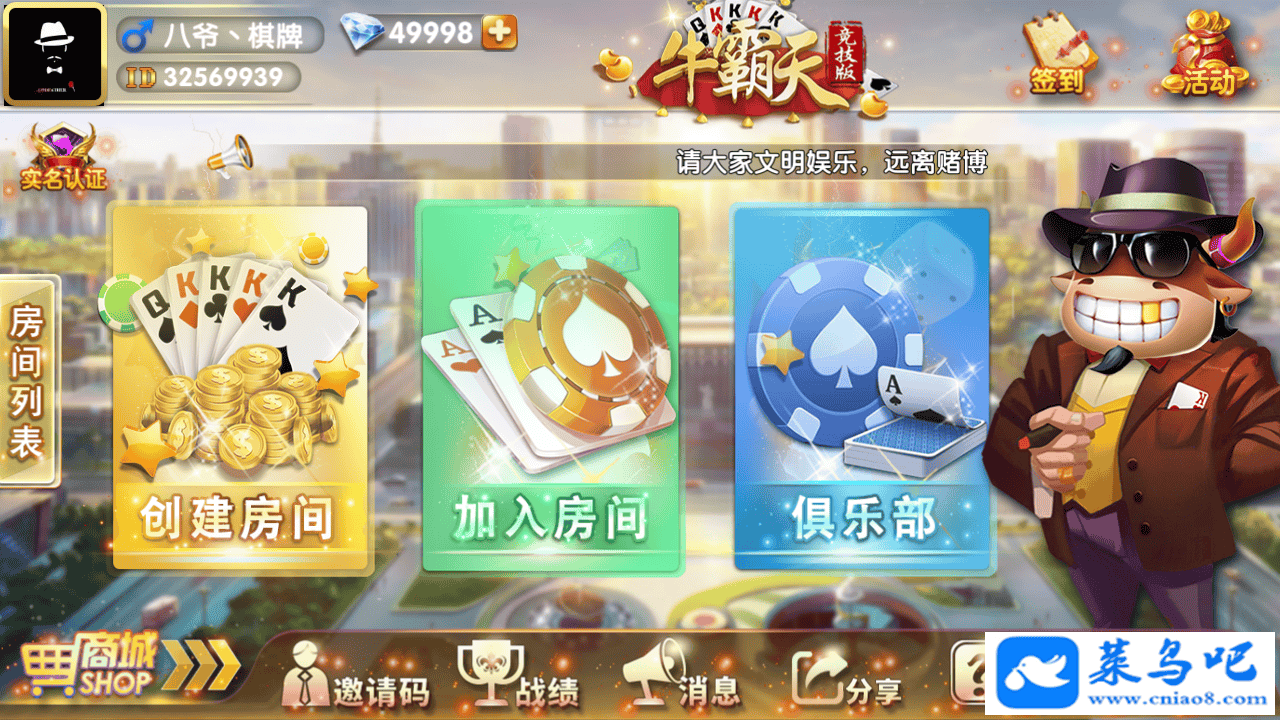 新牛霸天棋牌组件,房卡牛牛带俱乐部,带积分模式和抽水模式