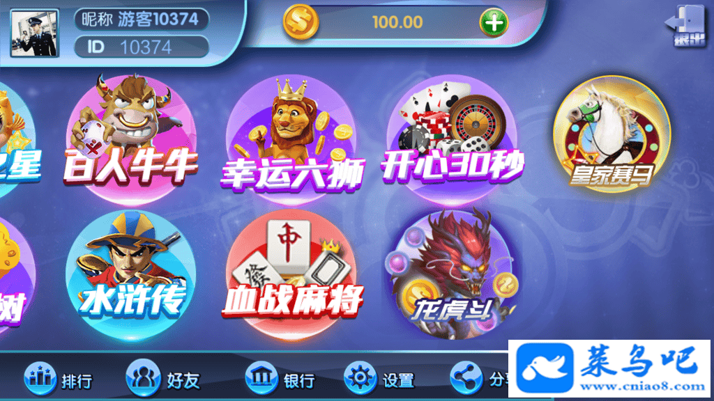 斗地主、抢庄牛牛、摇钱树、水浒传、炸金花、海洋之星捕鱼、百人牛牛、幸运六狮