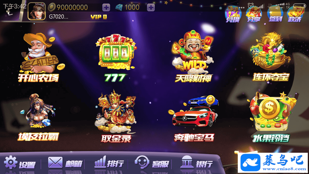 拉霸游戏:开心农场、777、天降财神、连环夺宝、埃及拉霸、取金取、奔马宝马、水果铃铛、ATT连环炮、飞禽走兽。