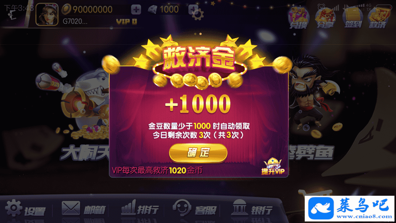 捕鱼游戏:大闹天宫、摇钱树、李逵劈鱼。