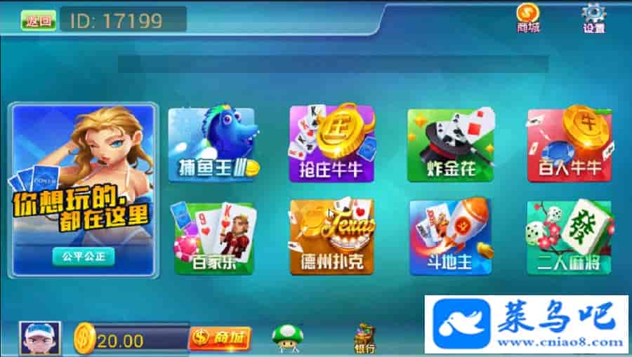 10款游戏 捕鱼 牛牛炸金花 百人牛牛 百家乐梭哈斗地主 通比牛牛 二人麻将德州扑克