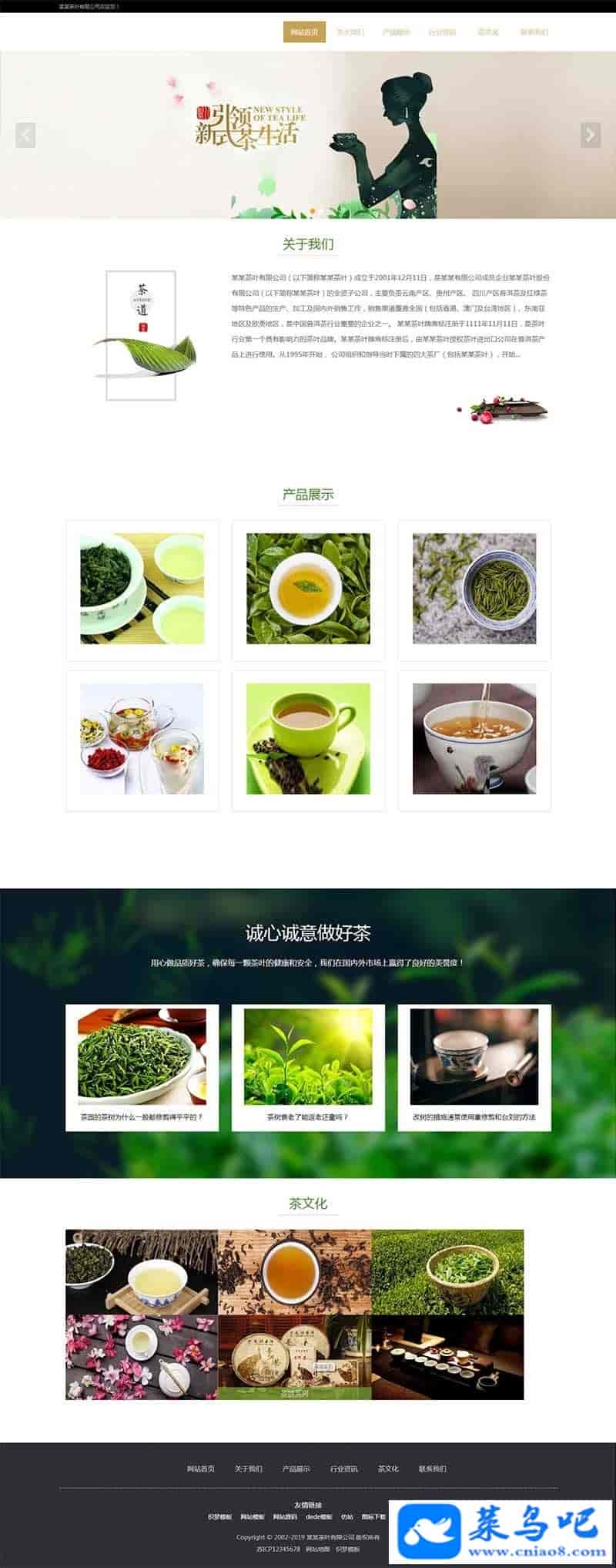 织梦dedecms响应式茶叶茶艺茶文化企业网站模板(自适应手机移动端)本套织梦模板采用织梦最新内核开发的模板,这款模板使用范围极广,不仅仅局限于一类型的企业,你只需要把图片和产品内容换成你的即可,颜色都可以修改,改完让你耳目一新的感觉!布局规整,利于用户体验,手工书写DIV+CSS,代码精简。